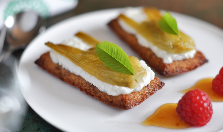 Financier à l’huile d’olive, fenouil confit à l’orange et brocciu