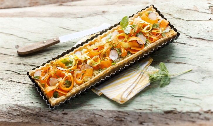 Tarte fraîche aux carottes et brousse aux herbes