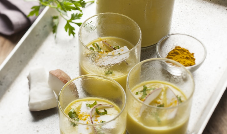 Soupe glacée poireau-coco-curry