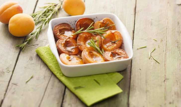 Abricots rôtis au romarin et vanille