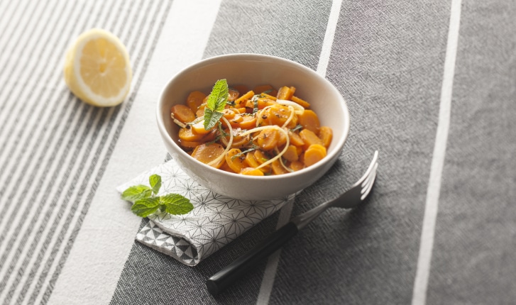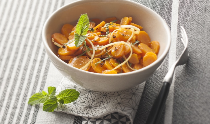 Une salade de carottes cuites aux parfums méditerranéens (cumin, menthe, citron) à déguster très fraîches entrée ou à partager à l'apéritif.