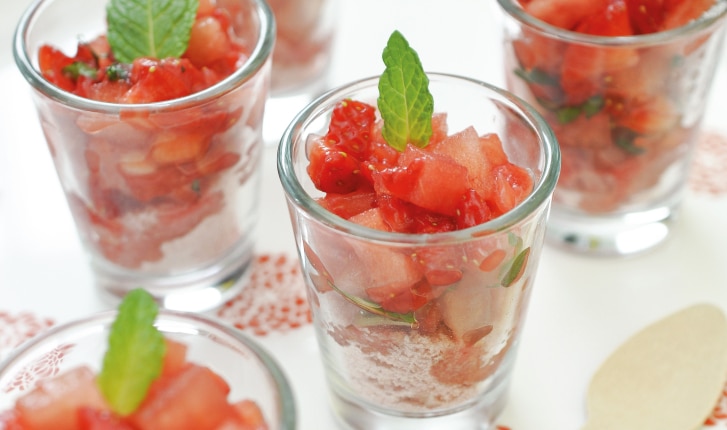 Simplissime, rafraîchissant et savoureux ce tartare de pastèque et fraises que les enfants peuvent facilement préparer tout seuls. Il n'est jamais trop tôt pour s'initier au goût et à la cuisine !