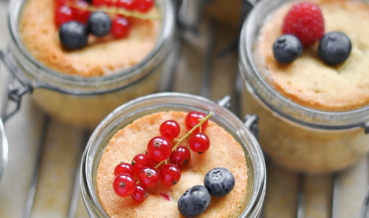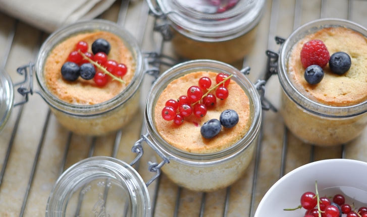 Ce délicieux gâteau individuel aux fruits rouges cuit au four dans son petit bocal et se transporte partout (au bureau, en pique-nique, en voyage, etc.). Groseilles, framboises, myrtilles... dans une pâtisserie maison "à emporter".