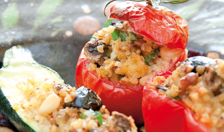 Une version végétarienne d'un grand classique du répertoire culinaire niçois. Courgette, poivron, tomate sont garnis d'une farce végétarienne bien parfumée.