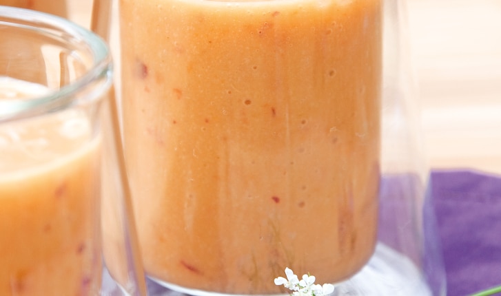 En deux temps trois mouvements, un délicieux milkshake très fruité, bien frappé. En plein été, abricots et pêche sont au top de leurs saveurs. Profitez-en !