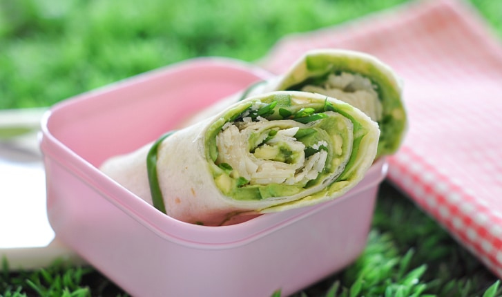 Pour le pique-nique, un wrap végétarien à base d'avocat, de courgette, de salade, agrémenté de pétales de parmesan. Un sandwich végétarien à emporter au bureau, en forêt, à la plage...
