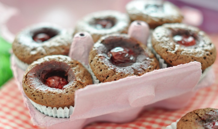 La gourmandise au menu avec de muffin au chocolat et aux cerises fraîches, pour les afficionados du chocolat ET des fruits. Un muffin pour célébrer la courte saison des cerises.