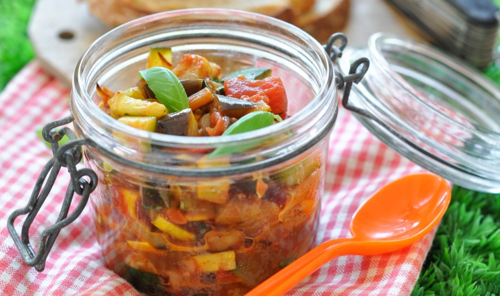 A emporter ou sur place ? Une délicieuse fondue de légumes d'été (aubergine, courgette, tomate) cuisinés à l'ail et au basilic. En pique-nique, on dégustera cette fondue froide sur une tartine de pain et à la maison, on l'aimera chaude pour accompagner une grillade (poisson, viande ou volaille).