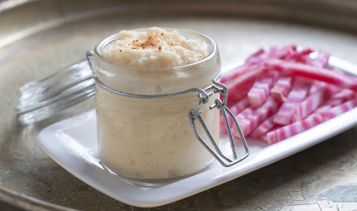 Surprenant et haut en saveurs ce houmous de rutabaga à tartiner à l'apéritif ou en entrée sur des toasts grillés, pour faire trempette avec des bâtonnets de légumes (céleri, betterave crue, carotte, etc.) ou des feuilles d'endive.