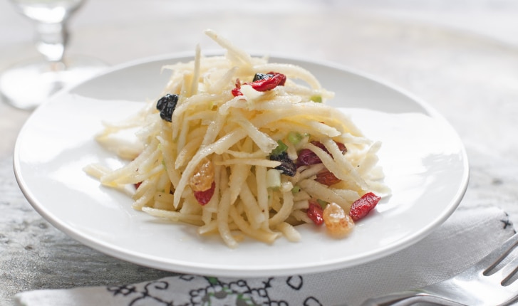 Fraîche et inattendue cette salade de rutabaga cru râpé associé pour la douceur à la pomme et au miel.