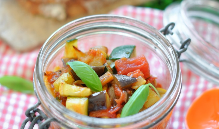 A emporter ou sur place ? Une délicieuse fondue de légumes d'été (aubergine, courgette, tomate) cuisinés à l'ail et au basilic. En pique-nique, on dégustera cette fondue froide sur une tartine de pain et à la maison, on l'aimera chaude pour accompagner une grillade (poisson, viande ou volaille).