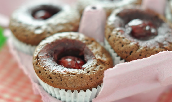 La gourmandise au menu avec de muffin au chocolat et aux cerises fraîches, pour les afficionados du chocolat ET des fruits. Un muffin pour célébrer la courte saison des cerises.