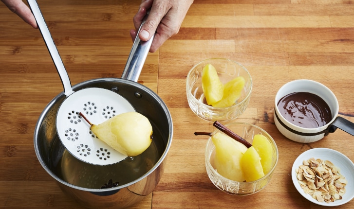 Pocher des fruits – Sortir les fruits du sirop en fin de cuisson – 4