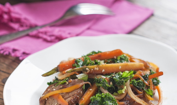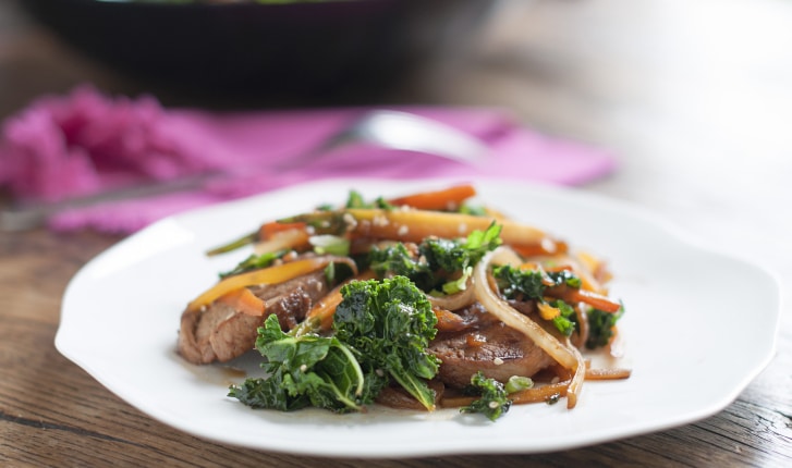 Mijotez en quelques minutes un bon wok de chou kale et filet mignon de porc aux accents exotiques, à partager en famille ou entre amis.