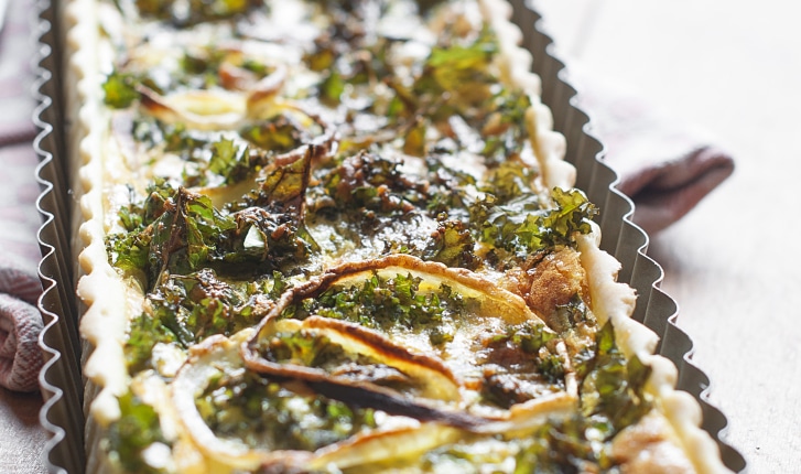 Tarte salée au chou kale et au curcuma