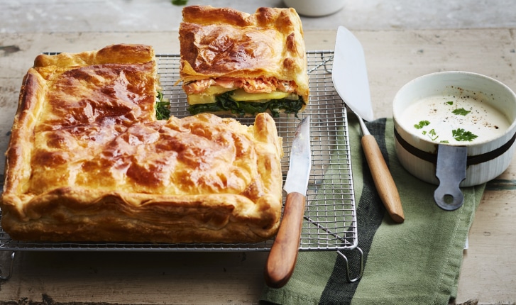 Généreuse, festive et élégante cette tourte au cresson et pommes de terre au saumon frais ET fumé, à servir accompagnée d'une salade verte ou d'une salade d'endives.