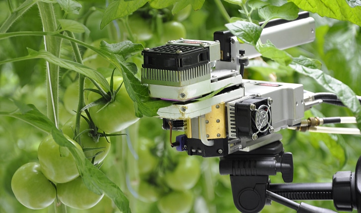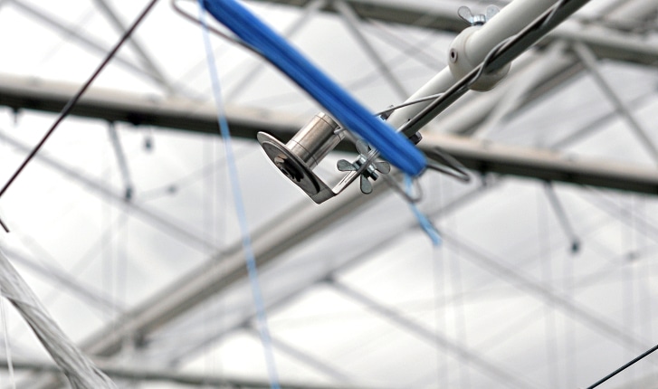 CTIFL – Serre d’expérimentation – Culture de tomates – Sonde infrarouges de mesure de la transpiration des plantes en temps réel Format : Paysage