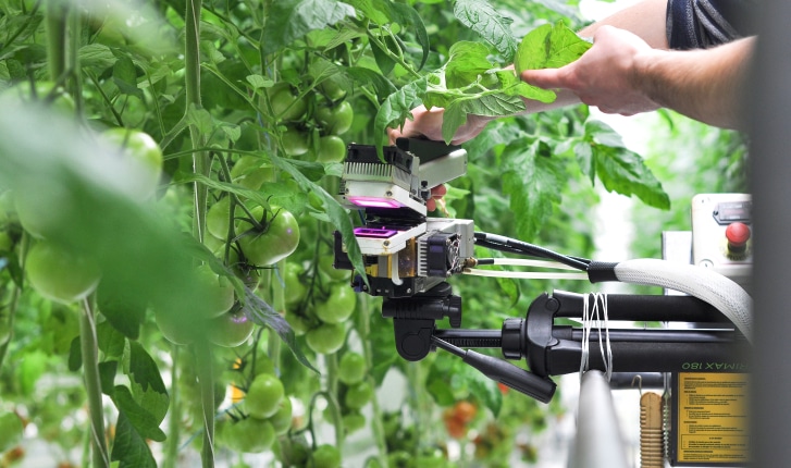 CTIFL – Serre d’expérimentation – Culture de tomates – Appareil de mesure de la phytosynthèse en temps réel (échange gazeux, mesure CO2) Format : Paysage