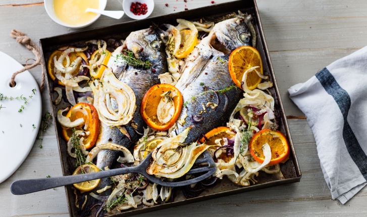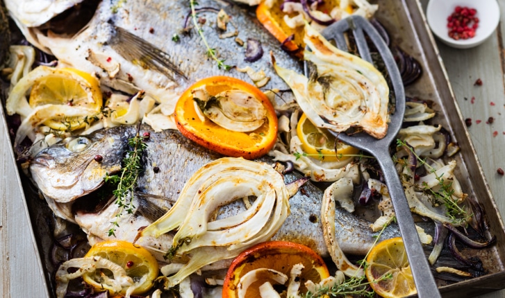 A partager entre amis ou en famille : ce beau plat de dorade au fenouil, élégant et délicieux... un vrai goût des vacances au bord de la mer.