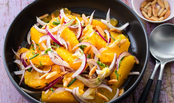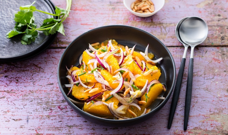 Une salade rafraîchissante, exotique et surprenante à base d'orange, d'oignons rouge et d'herbes fraîches.