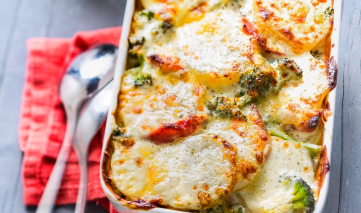 Un bon gratin familial, convivial et haut en saveurs à base de pommes de terre et de brocolis, rehaussés de chorizo. A savourer au coin du feu !