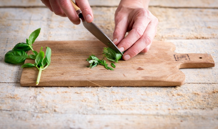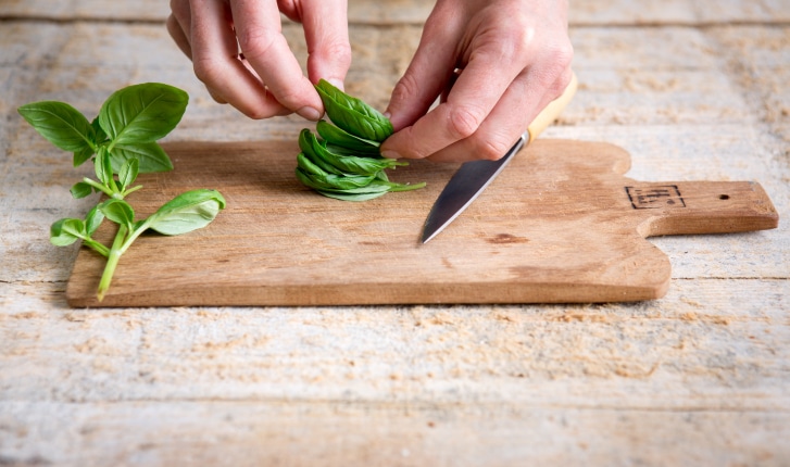 Une astuce pour gagner du temps au quotidien en cuisine : ciseler le basilic, la menthe, la sauge, la mélisse...c'est facile et rapide ! Empiler les feuilles et faire un petit rouleau puis couper finement.