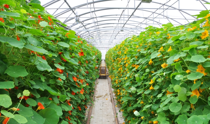 Capicines sous serre (fleurs comestibles)