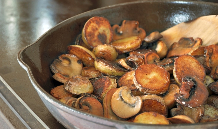 Une bonne poêlée toute simple et savoureuse de pommes de terre et de champignons de Paris. A associer à une omelette, une volaille rôtie, des grillades, etc.