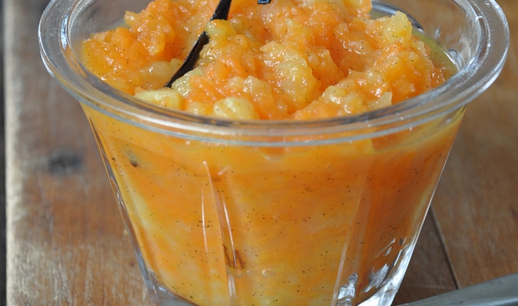 Couleur bonne mine pour cette compote peu ordinaire, vitaminée et délicieuse, où l'acidité de la pomme et la douceur du potiron se marient parfaitement.