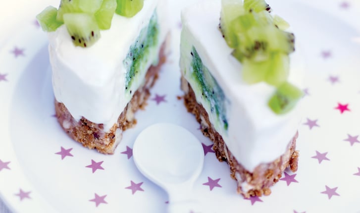 Le Chef Olivier Chaput a spécialement imaginé pour la saison du kiwi 2014-2015 deux recettes, dont un cheesecake au cœur coulant de kiwi pour les petits chefs.