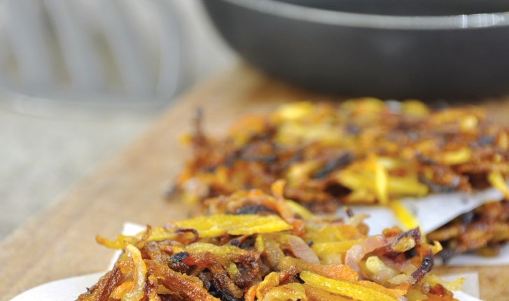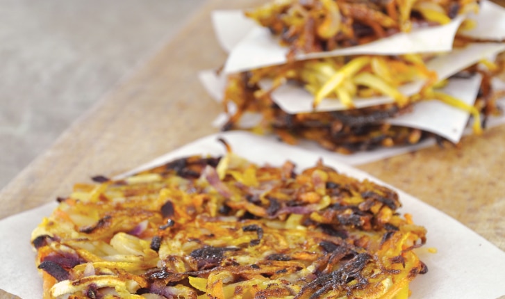 Une galette de légumes râpés, croustillantes et bien dorées. A servir avec une salade ou une poêlée de champignon.