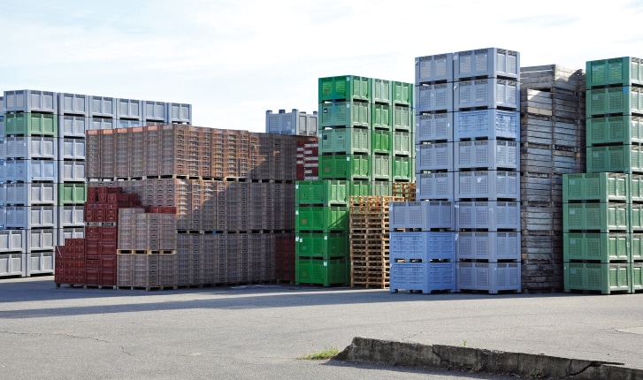 Zone de stockage de paloxs et palettes au sein d’une coopérative
