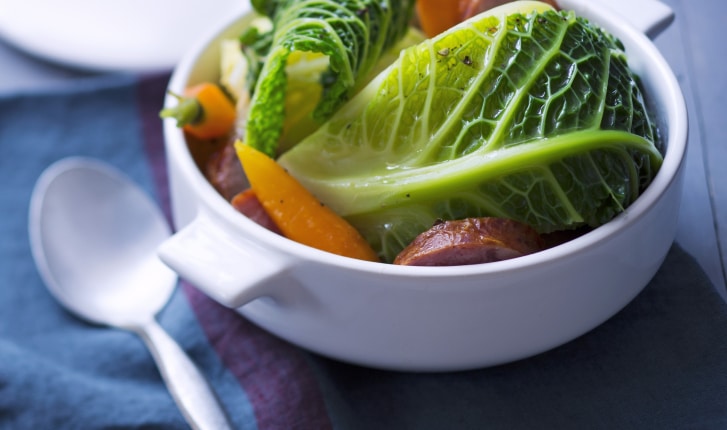 Chaleureuse, conviviale, généreuse, cette petite potée de légumes à la Morteau nous réconciliera avec l'hiver. Un bon plat complet à base de chou et de carottes, à partager.