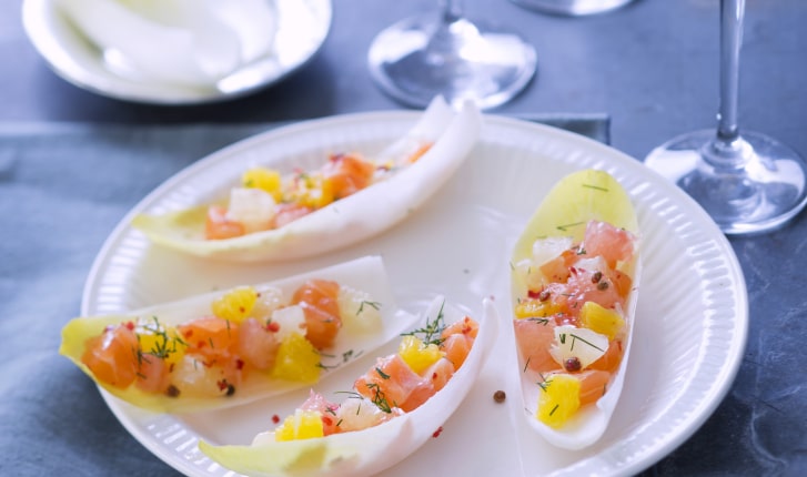 Bouchées d’endives au saumon frais et dés d’agrumes