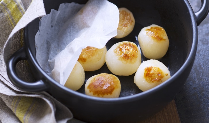 Cocotte de navets glacés au beurre et au sucre pour accompagner un rôti (agneau, canard).