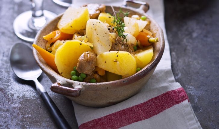 Navarin d'agneau printanier aux navets, petits pois et carottes. Cuisinez dans cette recette le navet "boule d'or", une variété à redécouvrir.