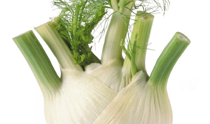 Un bulbe de fenouil sur fond blanc.