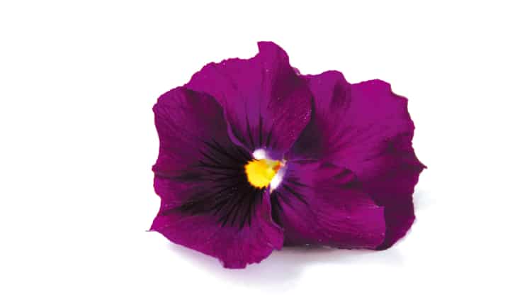 Fleur comestible - pensée sur fond blanc.