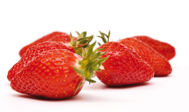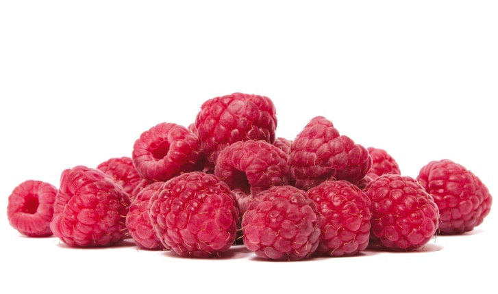 Framboises fraîches sur fond blanc.