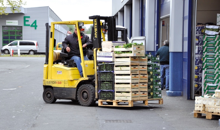 Chariot élévateur - Marché de gros fruits et légumes - Préparation des tournées de livraisons.