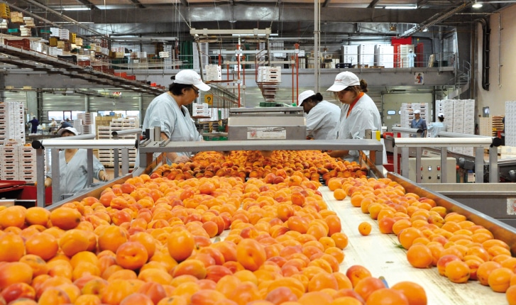 Expédition abricot - ligne de tri et conditionnement abricots après récolte.