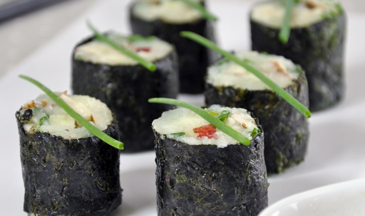 Makis à la française. Un mariage exotique entre la pomme (fruit) et la pomme de terre.