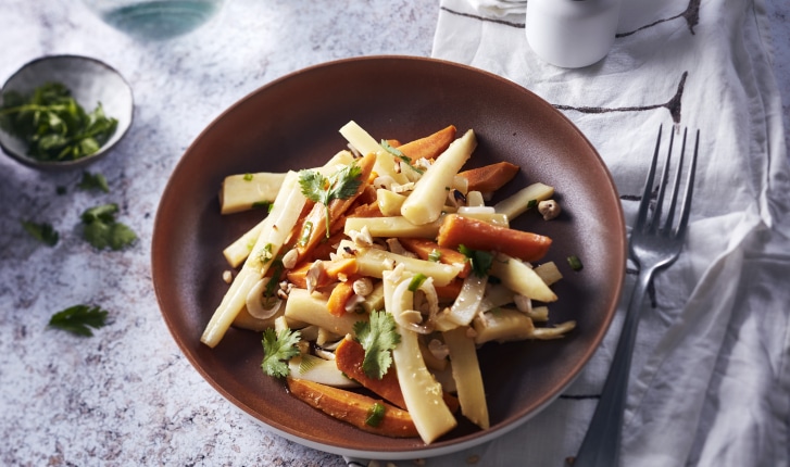 Wok de panais et patate douce à l’asiatique