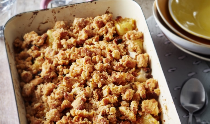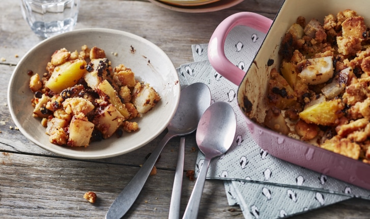 Crumble poire ananas chocolat et biscuits Petit Beurre