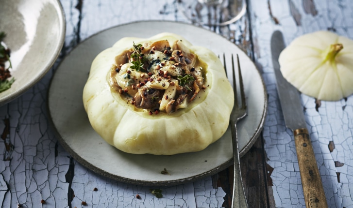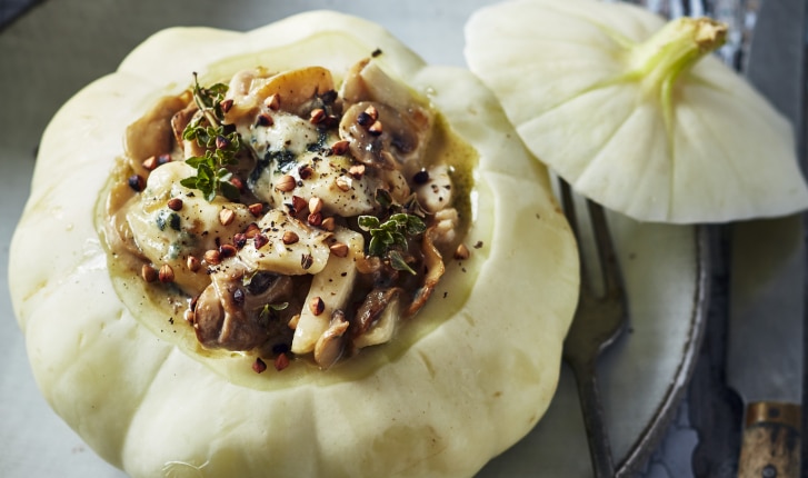 Pâtisson farcis aux champignons et au roquefort, graines de sarrasin