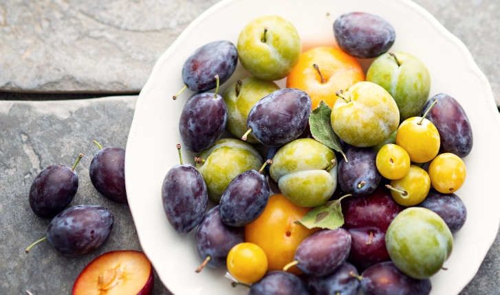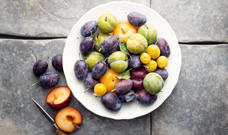 Déclinaison esthétique de différentes variétés de prunes (mirabelles, quetsche, Reines-Claudes, ...)