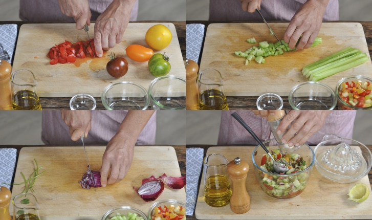 Une sauce fraîche à base de tomate, de concombre, d'oignon frais et de coriandre, à savourer sur des chips de maïs croustillants ou dans des petites verrines de dégustation.